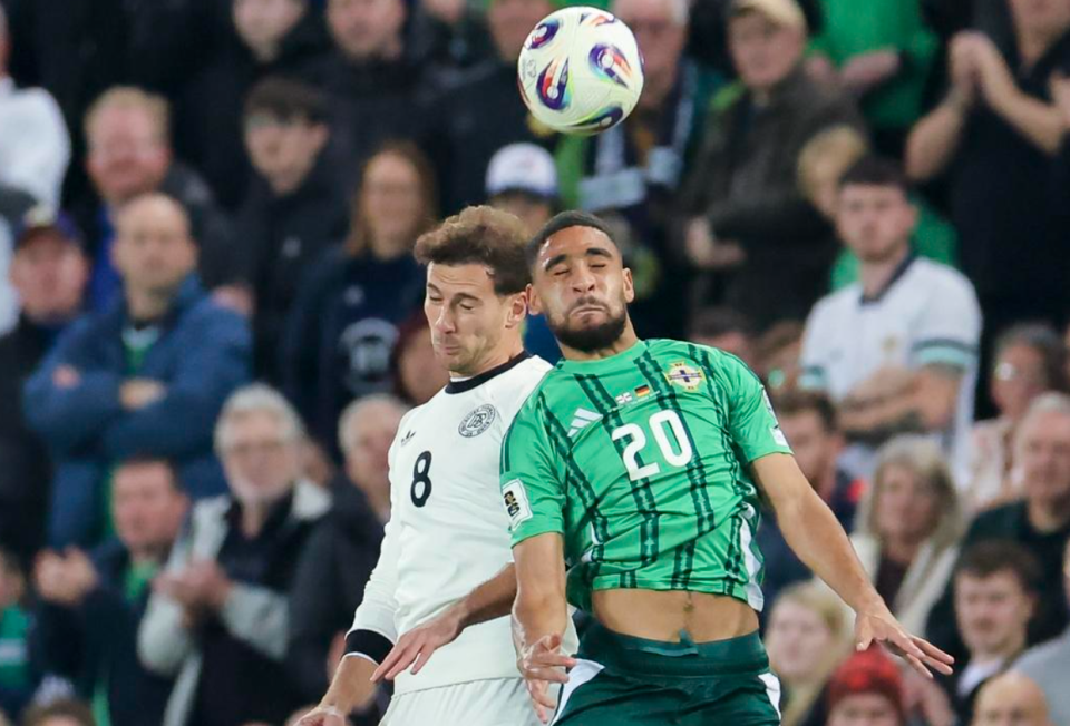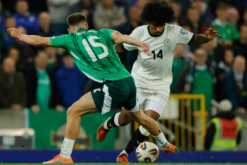 德国队排出4141阵型。沃尔特马德顶在最前面。维尔茨、格雷茨卡、格纳布里和阿德耶米的进攻组合联袂出击。帕夫洛维奇单后腰。劳姆、施洛特贝克、约纳坦-塔和基米希4后卫首发出战。奥利弗-鲍曼担任首发门将。德国队首发阵容总身价4.52亿欧元。而北爱尔兰首发阵容总身价只有5710万欧元。